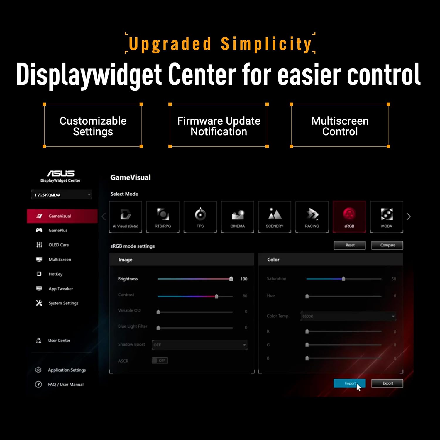 DisplayWidget Center enables easy OSD access and monitor settings adjustments with a mouse