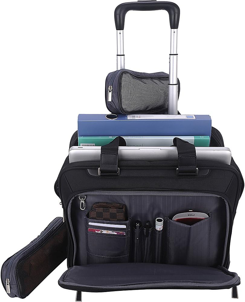 The ECO STYLE Tech Exec Carrying Case is a rolling briefcase-style laptop bag that accommodates notebooks up to approximately 16.1 inches and offers ample storage for accessories and essentials.