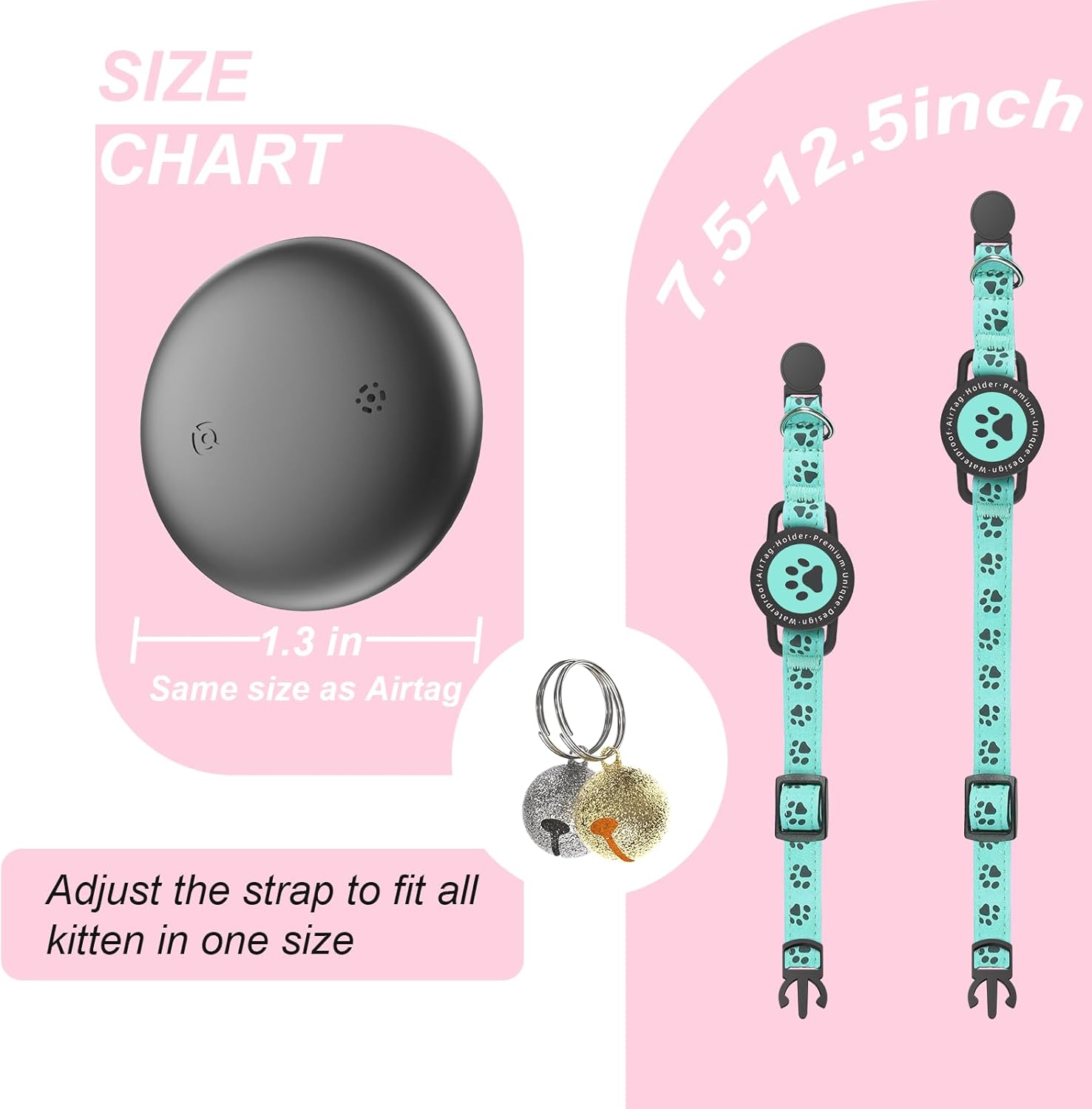 【Precise Tracking】Put an Airtag into this cat collar with holder to build a lightweight tracking collar for your cats. When within the bluetooth range, the mini cat tracker will emit a clear, loud beep noise to help you locate your pet. When out of range, it will utilize bluetooth technology and nearby Apple devices for precise global location tracking.(iOS Only, Not for Android)