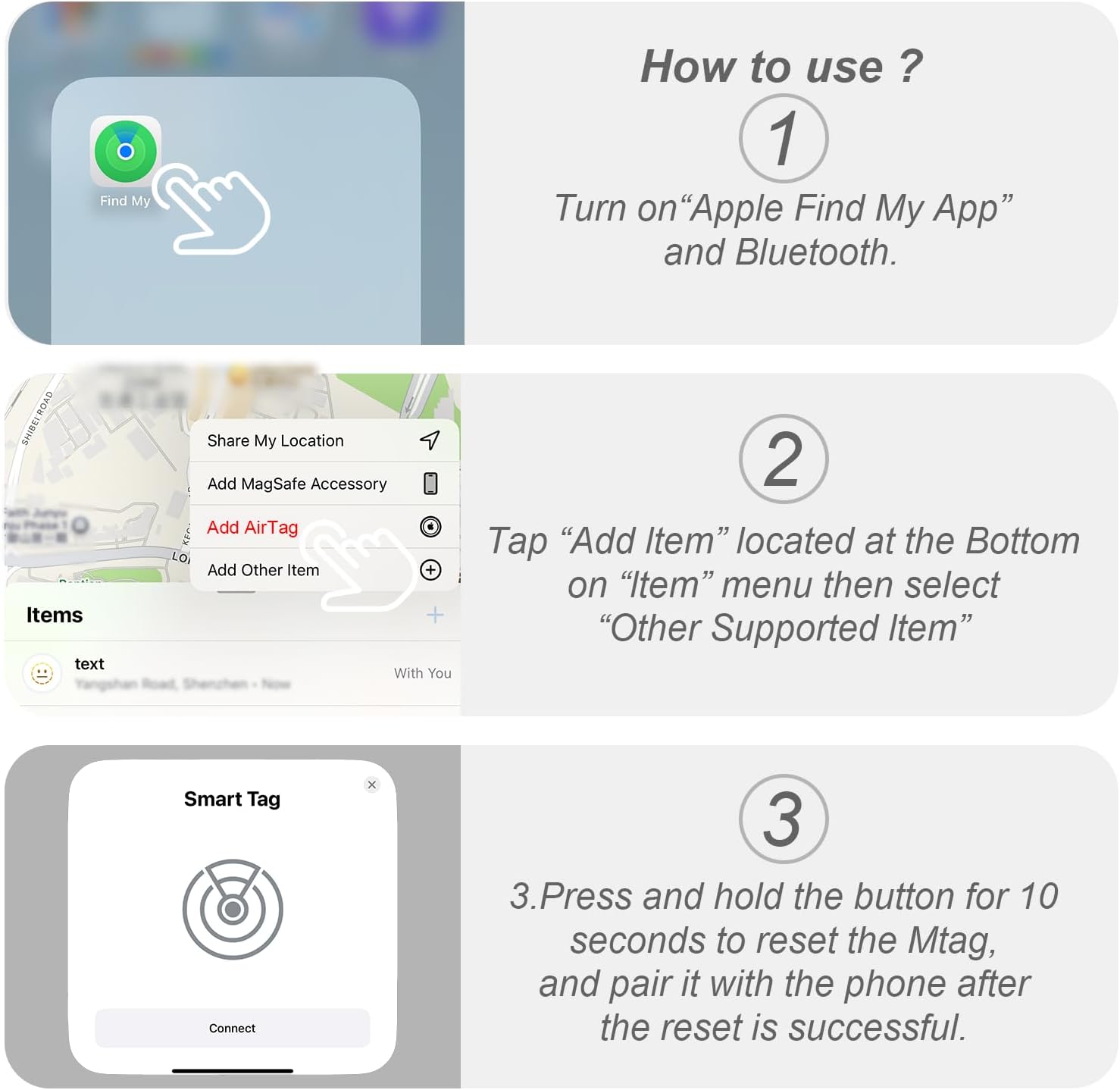 As an older person I found this very difficult to assemble. The black color of the battery case made it difficult to see the on/off, being slippery it was hard to handle, connecting to Find My a nightmare and I still had to look for my cat. It would should her in the house when she was outside. I am fairly comfortable with devices but this was aggravating and inaccurate. I will set try an apple tag because My Find is very accurate in comparison. Sorry for the bad review but this has been my experience.
