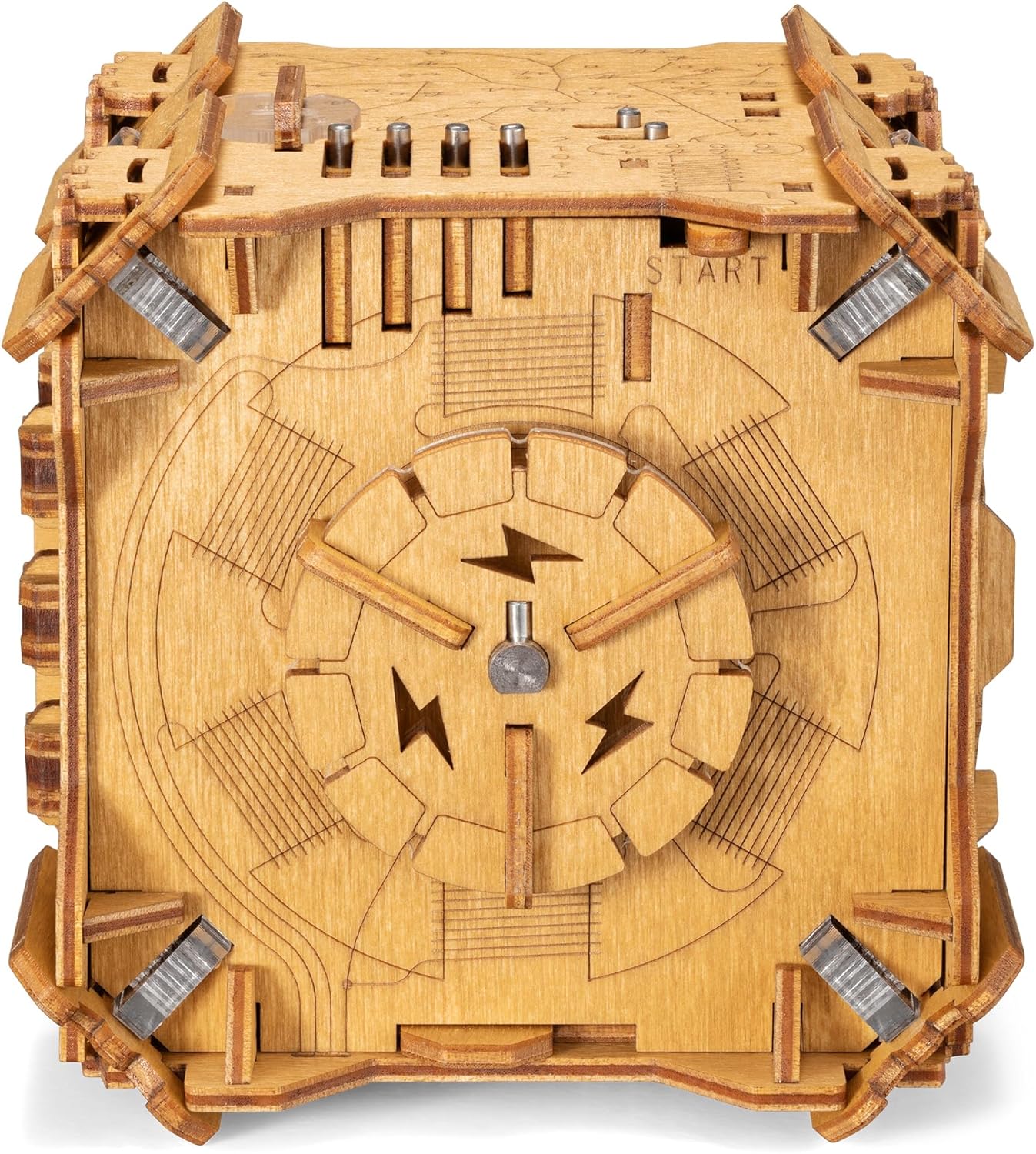 | Best For | Adults and puzzle enthusiasts seeking a unique combination of electronic and mechanical brain teasers with immersive escape room style gameplay. | Gift givers looking for a mechanical puzzle box with resettable features and hidden compartments ideal for money or small valuables. | Puzzle lovers who appreciate visually striking designs and challenging riddles based on scientific inventions, suitable as a special gift. |