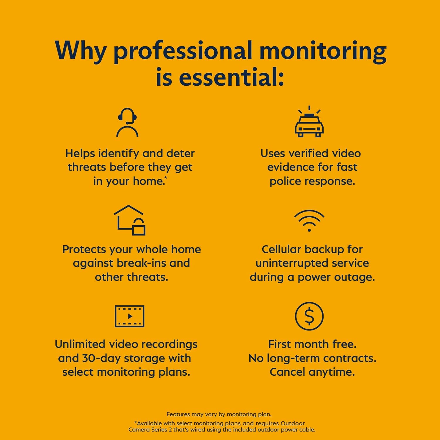 - Optional Features Require Additional Plans: Some advanced functionalities like Active Guard Outdoor Protection need specific monitoring plans.